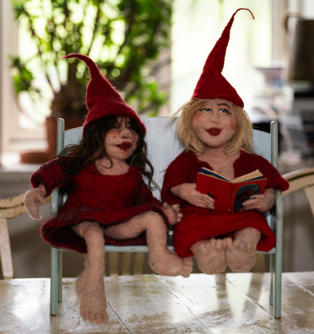 Mette Toftemark filtkunst er helt unik. Hendes filtede figurer er sjove, frække og glade. Hendes nålefiltede nisser og engle er lidt småfrække og ofte ses demoerne eller mindre afklædte. Selvom de bare er lavet af uld, så er de temmelig virkelighedstro og har ofte både deller og dobbelthager. De fleste, som ser dem, kan genkende sig selv eller nogen de kender i figurerne…..hvilket frembringer mange smil.